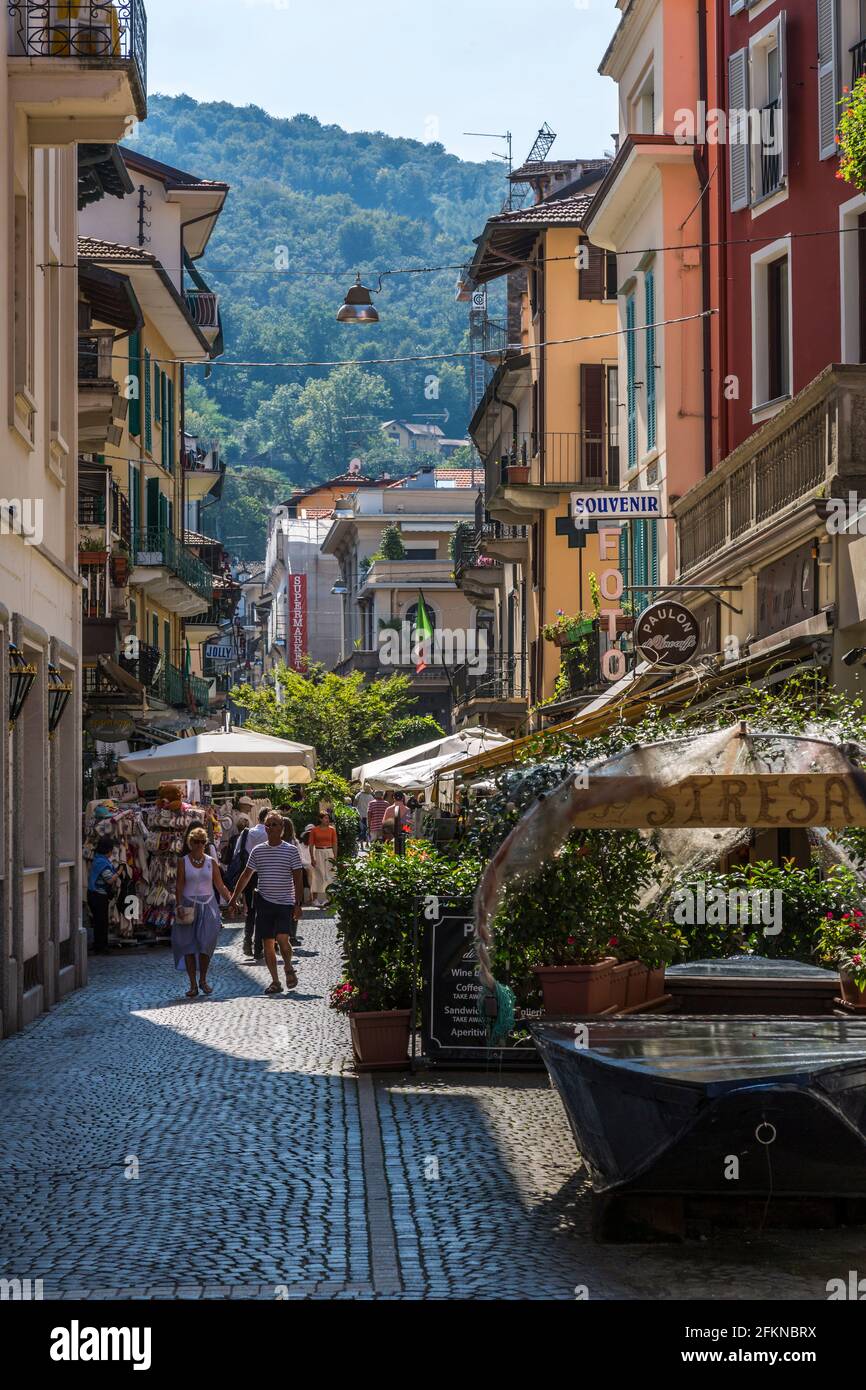 View Of Busy Street In Stresa Lago Maggiore Piedmont Italy Europe Stock Photo Alamy